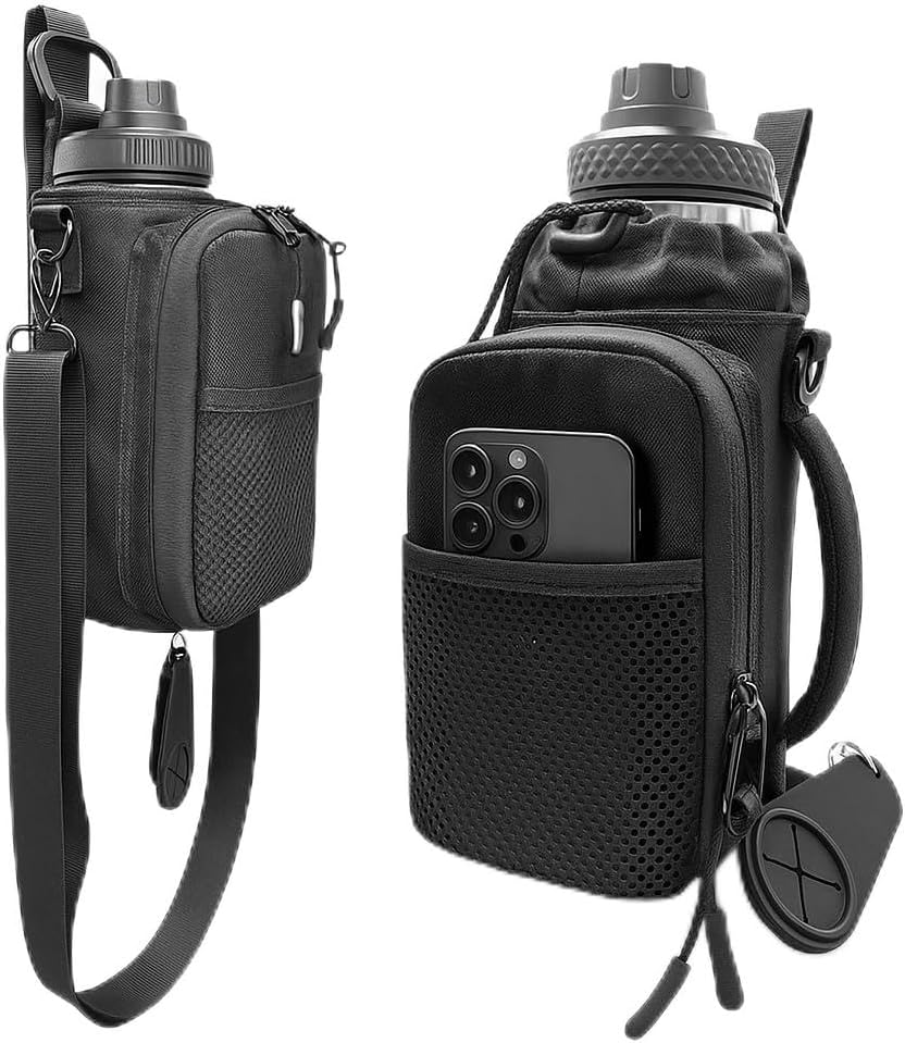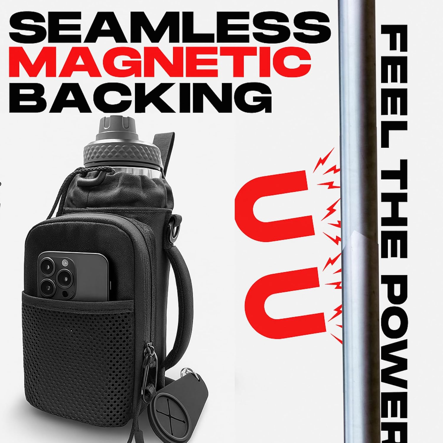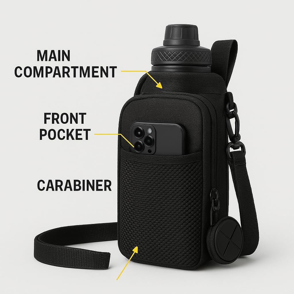 Stay hydrated and hands-free wherever you go. This multifunctional water bottle holder is designed with convenience and style in mind. Featuring a secure magnetic clasp and adjustable shoulder strap, it keeps your bottle close and easy to carry. The front mesh pocket and zippered compartment provide extra space for essentials like your phone, keys, or cards.